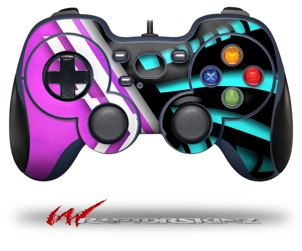 Black Waves Neon Teal Hot Pink - Decal Style Skin fits Logitech F310 Gamepad Controller (CONTROLLER SOLD SEPARATELY)