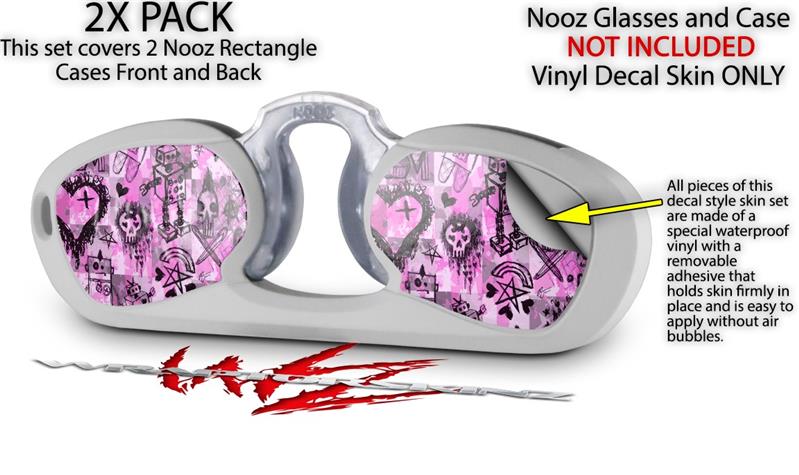 Decal Style Vinyl Skin Wrap 2 Pack for Nooz Glasses Rectangle Case Scene Kid Sketches Pink (NOOZ NOT INCLUDED) by WraptorSkinz