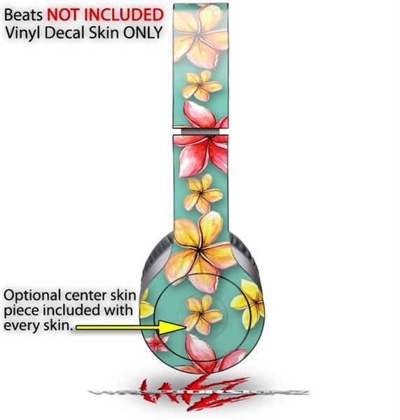 WraptorSkinz Skin Decal Wrap compatible with Beats Solo HD (Original) Beach Flowers Seafoam Green (HEADPHONES NOT INCLUDED)