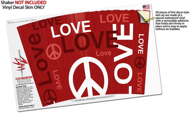 Skin Wrap Decal for IceShaker 2nd Gen 26oz Love and Peace Red (SHAKER NOT INCLUDED)