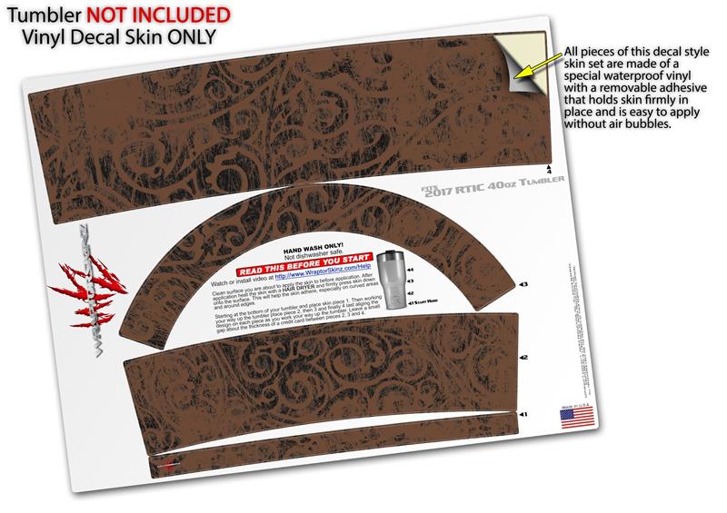 Skin Wrap Decal for 2017 RTIC Tumblers 40oz Folder Doodles Chocolate Brown (TUMBLER NOT INCLUDED)