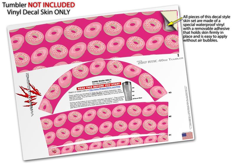 Skin Wrap Decal for 2017 RTIC Tumblers 40oz Donuts Hot Pink Fuchsia (TUMBLER NOT INCLUDED)