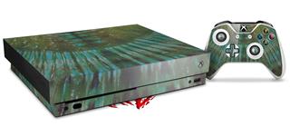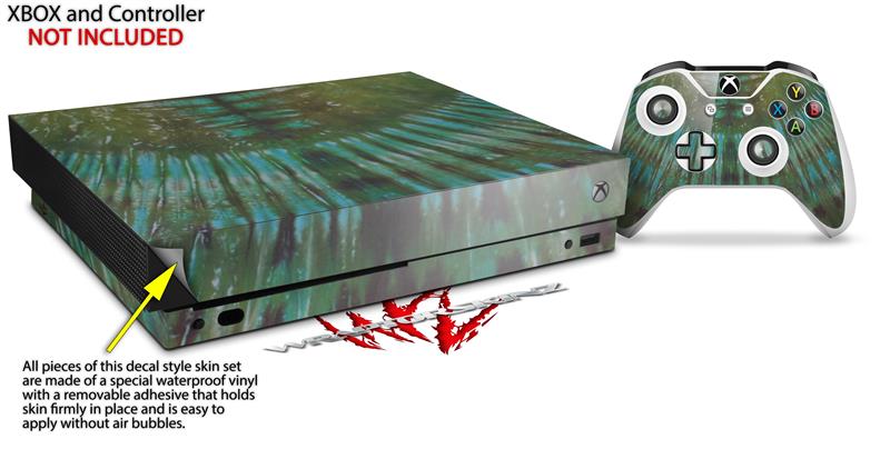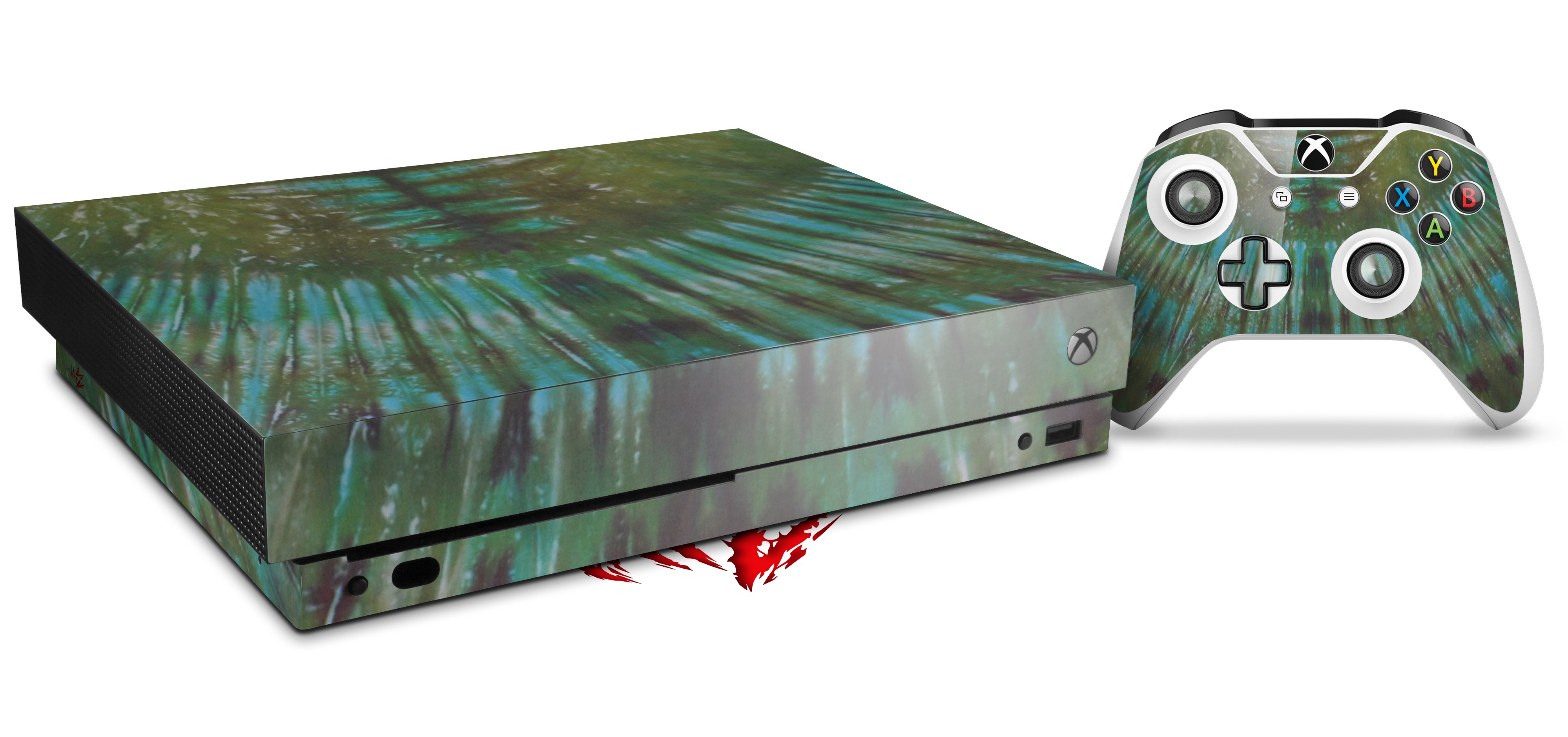 Skin Wrap for XBOX One X Console and Controller Tie Dye Turquoise Stripes