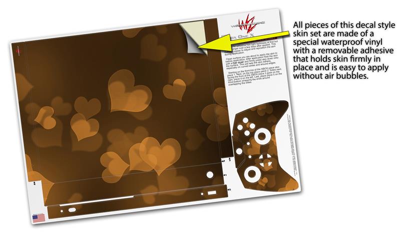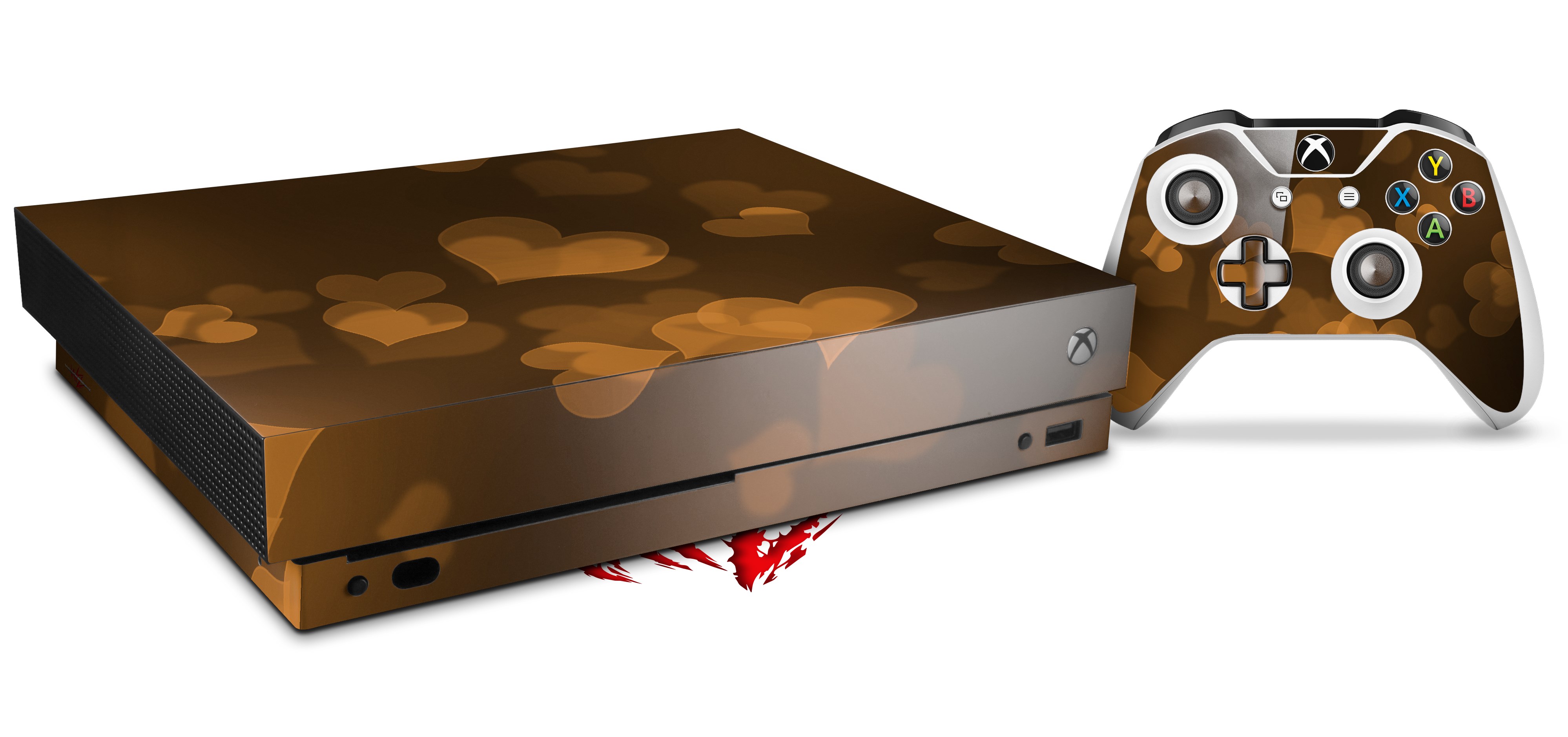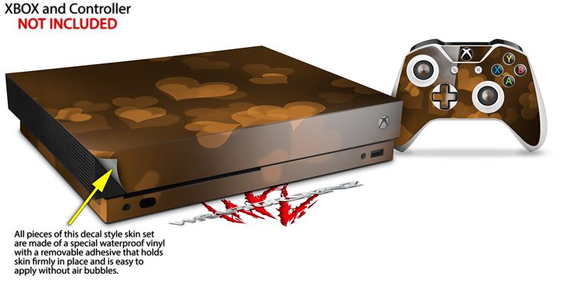 Skin Wrap for XBOX One X Console and Controller Bokeh Hearts Orange