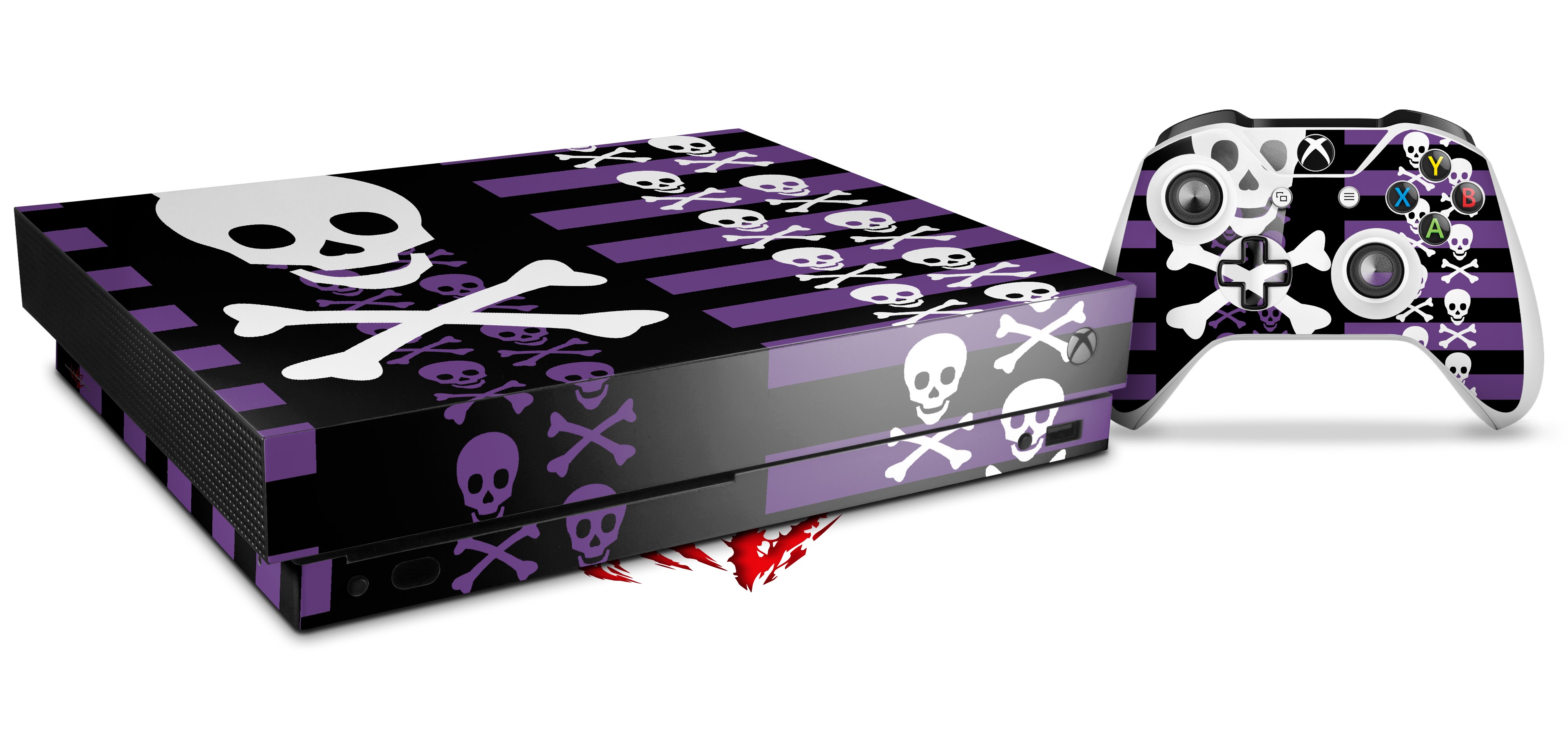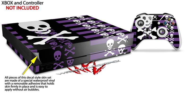 Skin Wrap for XBOX One X Console and Controller Skulls and Stripes 6