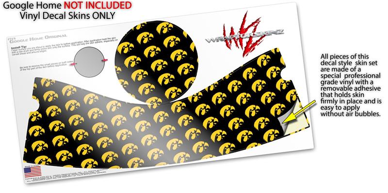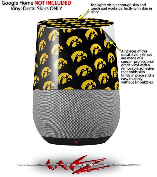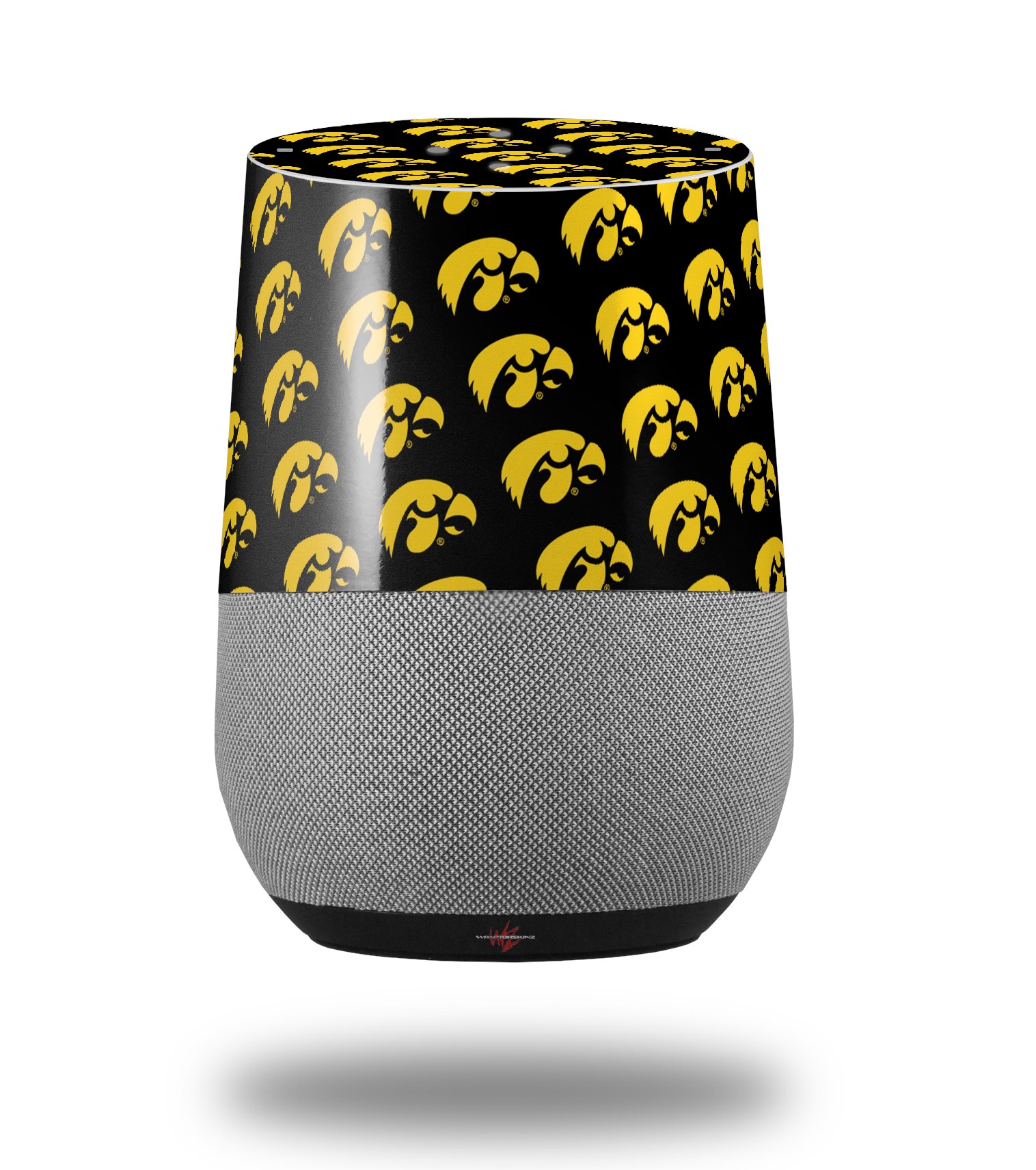 Decal Style Skin Wrap for Google Home Original - Iowa Hawkeyes Tigerhawk Tiled 06 Gold on Black (GOOGLE HOME NOT INCLUDED)