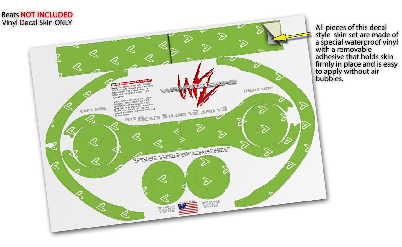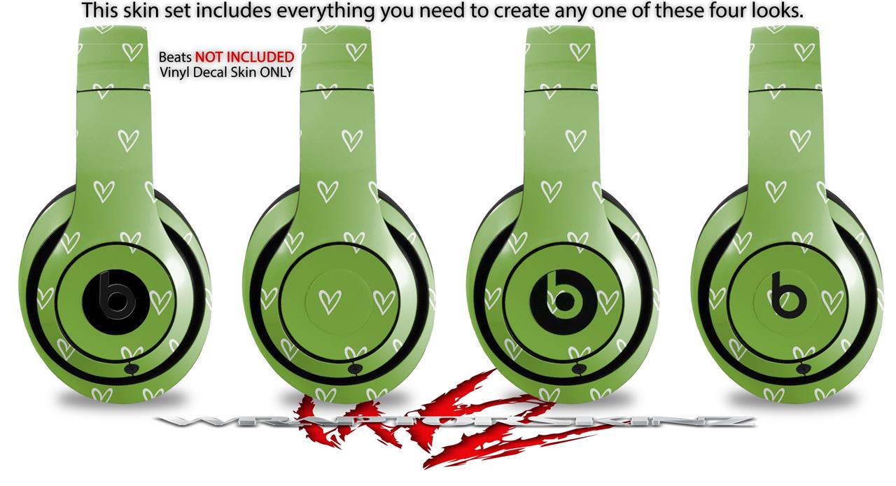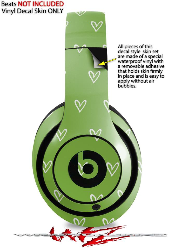 WraptorSkinz Skin Decal Wrap compatible with Beats Studio 2 and 3 Wired and Wireless Headphones Hearts Green On White Skin Only (HEADPHONES NOT INCLUDED)