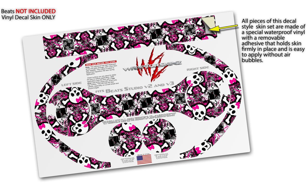 WraptorSkinz Skin Decal Wrap compatible with Beats Studio 2 and 3 Wired and Wireless Headphones Splatter Girly Skull Pink Skin Only (HEADPHONES NOT INCLUDED)