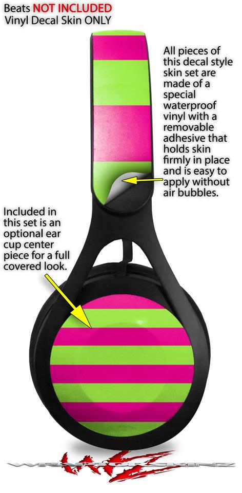 WraptorSkinz Skin Decal Wrap compatible with Beats EP Headphones Psycho Stripes Neon Green and Hot Pink Skin Only HEADPHONES NOT INCLUDED