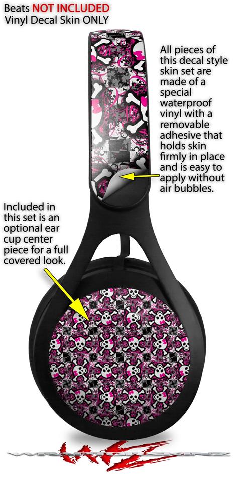WraptorSkinz Skin Decal Wrap compatible with Beats EP Headphones Splatter Girly Skull Pink Skin Only HEADPHONES NOT INCLUDED