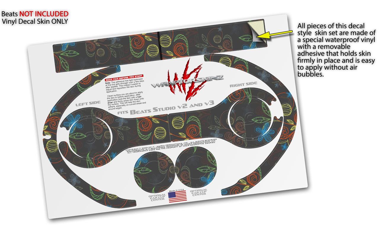 WraptorSkinz Skin Decal Wrap compatible with Beats Studio 2 and 3 Wired and Wireless Headphones Flowers Pattern 07 Skin Only (HEADPHONES NOT INCLUDED)
