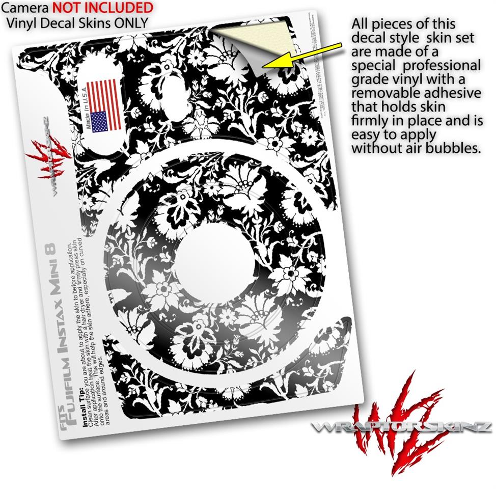 WraptorSkinz Skin Decal Wrap compatible with Fujifilm Mini 8 Camera Black and White Flower (CAMERA NOT INCLUDED)