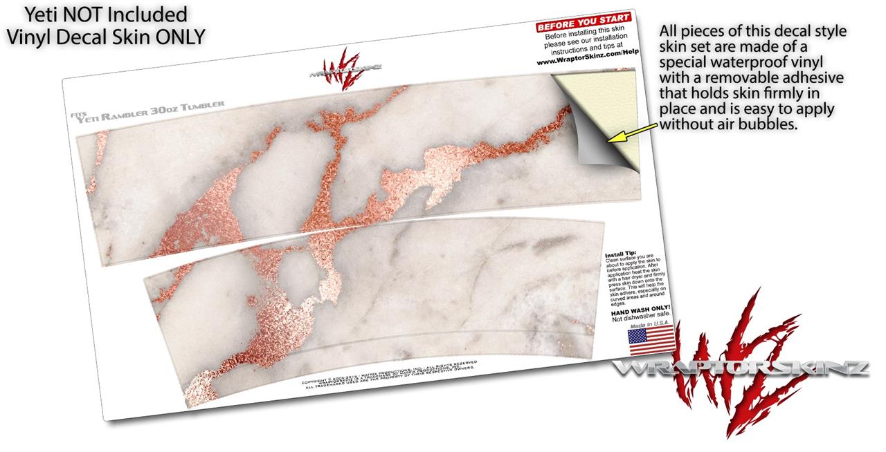 Skin Decal Wrap for Yeti Tumbler Rambler 30 oz Rose Gold Gilded Marble (TUMBLER NOT INCLUDED)