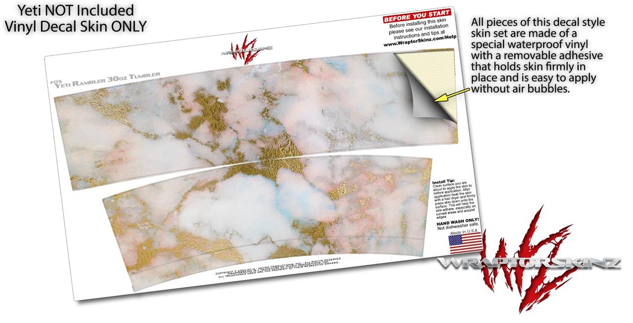 Skin Decal Wrap for Yeti Tumbler Rambler 30 oz Pastel Gilded Marble (TUMBLER NOT INCLUDED)