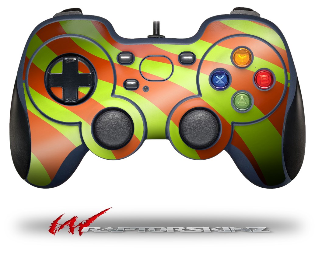 Two Tone Waves Neon Green Orange - Decal Style Skin fits Logitech F310 Gamepad Controller (CONTROLLER SOLD SEPARATELY)