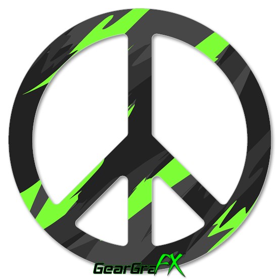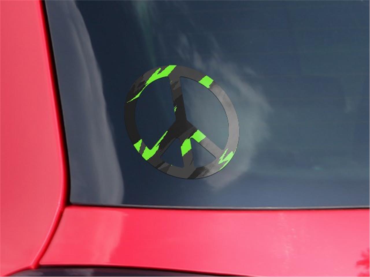Jagged Camo Neon Green - Peace Sign Car Window Decal 6 x 6 inches