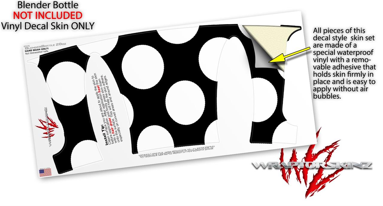 Decal Style Skin Wrap works with Blender Bottle 20oz Kearas Polka Dots White On Black (BOTTLE NOT INCLUDED)