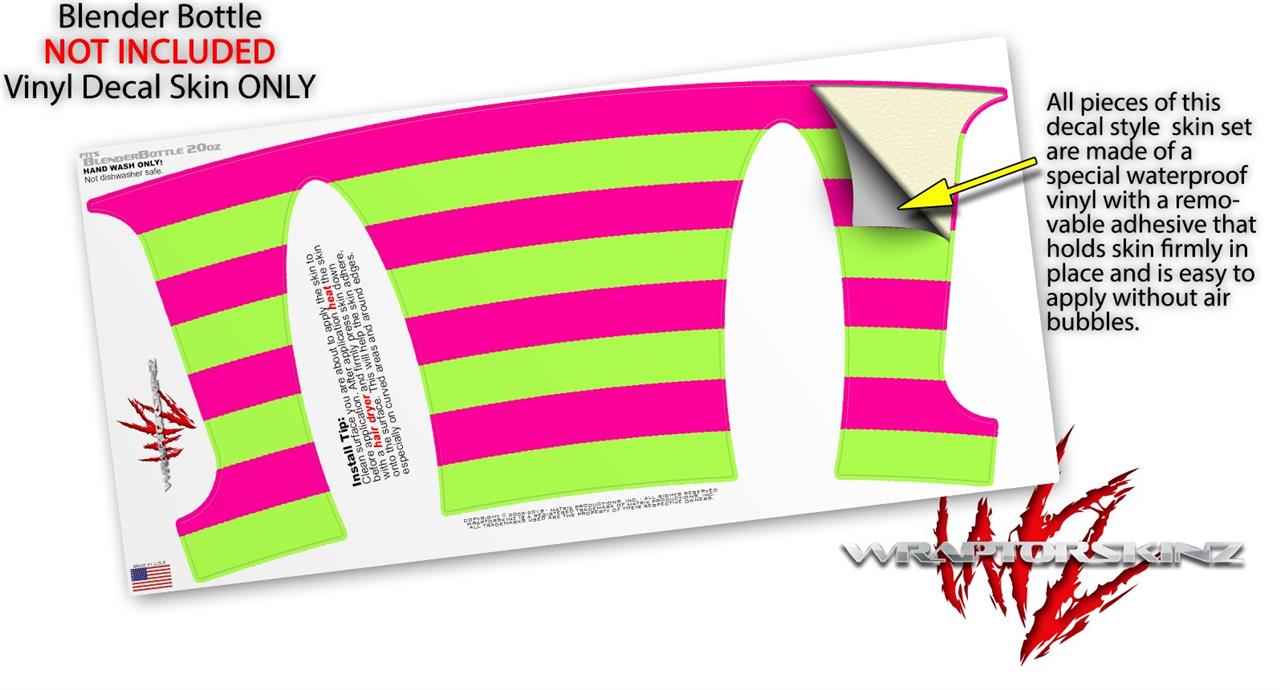 Decal Style Skin Wrap works with Blender Bottle 20oz Psycho Stripes Neon Green and Hot Pink (BOTTLE NOT INCLUDED)