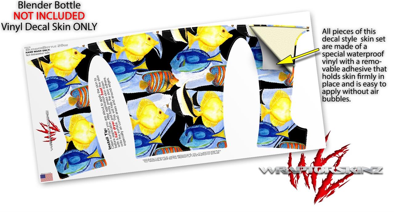 Decal Style Skin Wrap works with Blender Bottle 20oz Tropical Fish 01 Black (BOTTLE NOT INCLUDED)