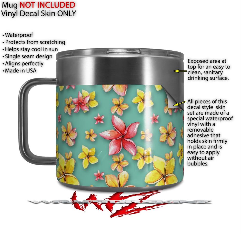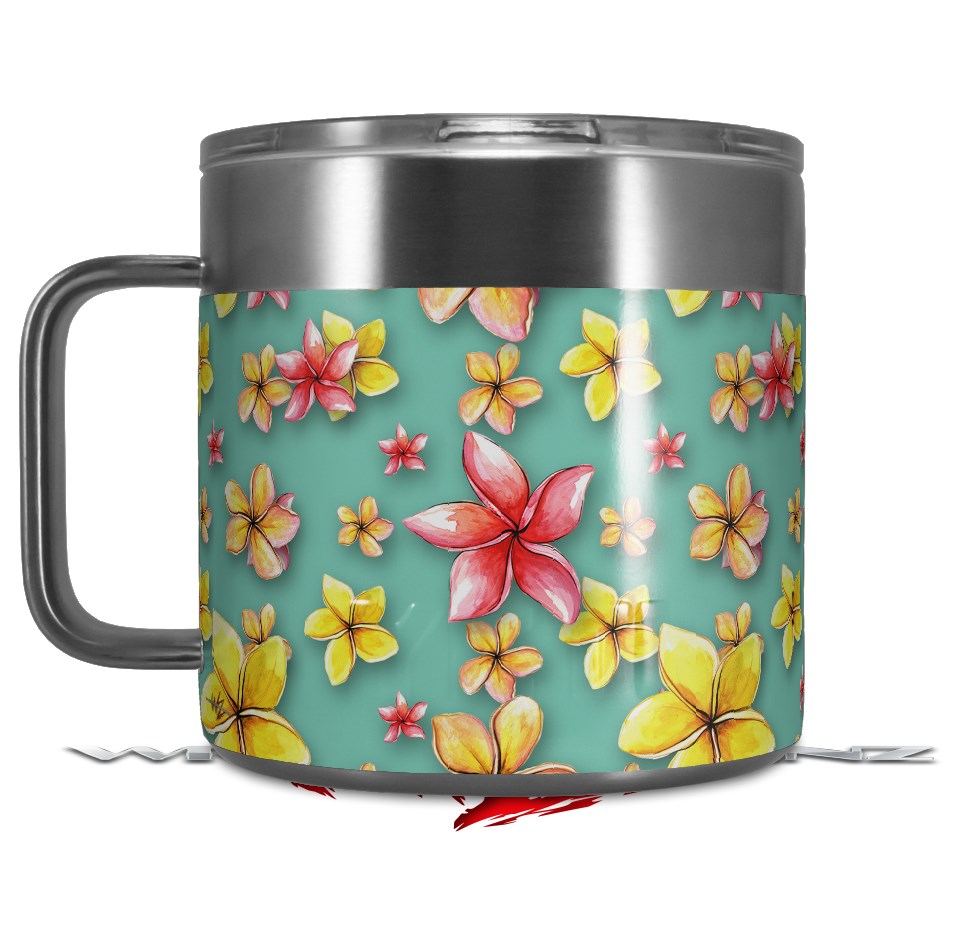 Skin Decal Wrap for Yeti Coffee Mug 14oz Beach Flowers Seafoam Green - 14 oz CUP NOT INCLUDED by WraptorSkinz
