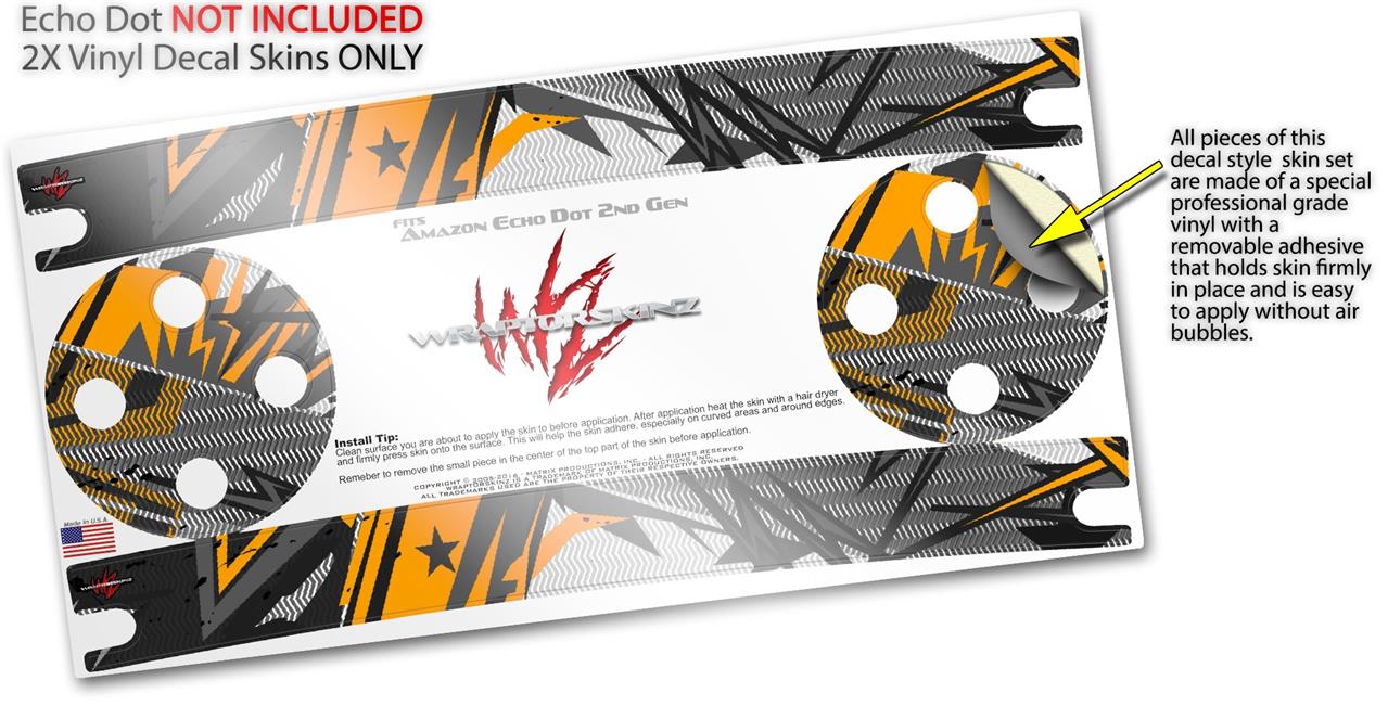 Skin Wrap Decal Set 2 Pack for Amazon Echo Dot 2 - Baja 0032 Orange (2nd Generation ONLY - Echo NOT INCLUDED)