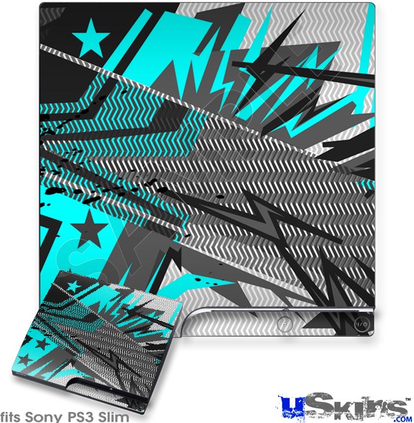 Decal Skin compatible with Sony PS3 Slim Baja 0032 Neon Teal