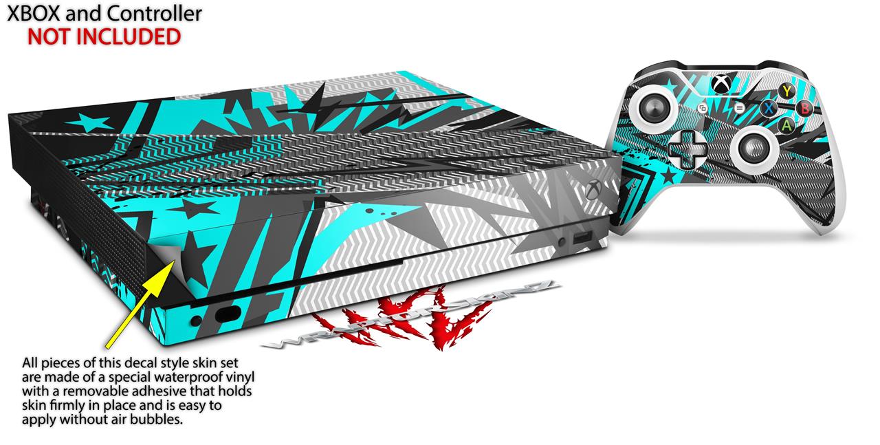 Skin Wrap for XBOX One X Console and Controller Baja 0032 Neon Teal