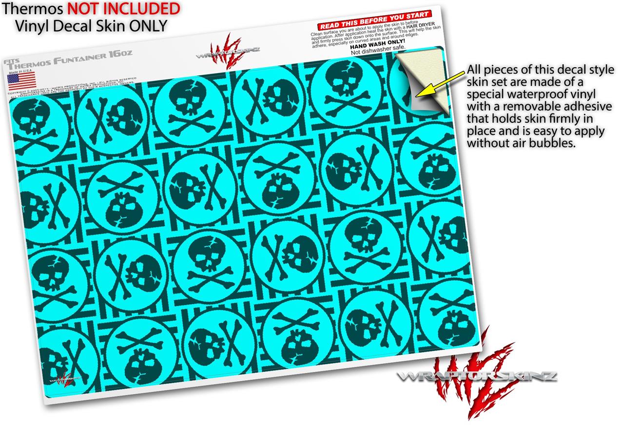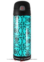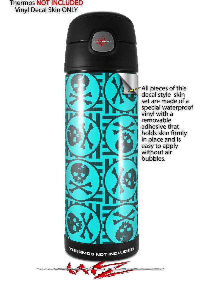 Skin Decal Wrap for Thermos Funtainer 16oz Bottle Skull Patch Pattern Blue (BOTTLE NOT INCLUDED) by WraptorSkinz
