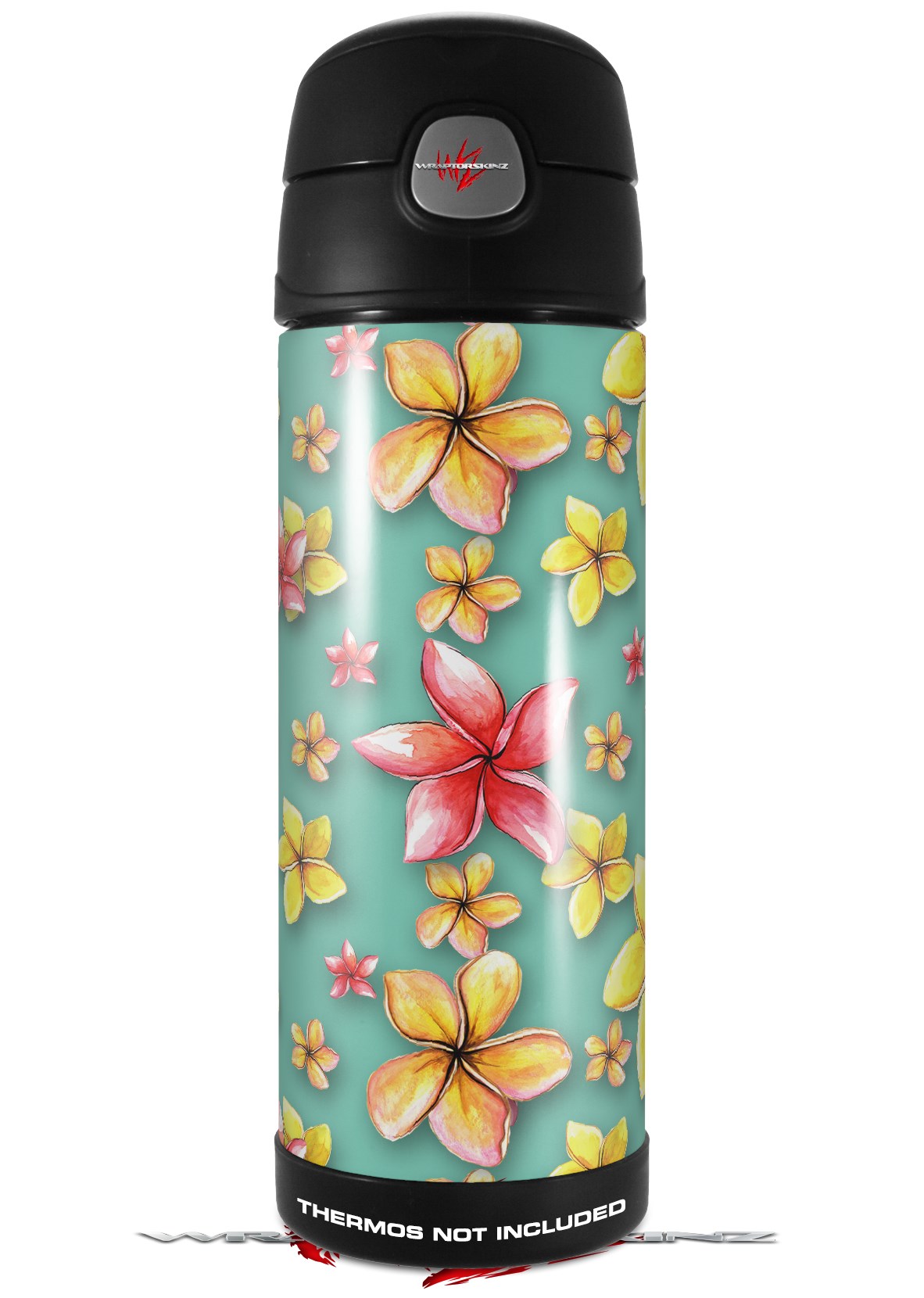 Skin Decal Wrap for Thermos Funtainer 16oz Bottle Beach Flowers Seafoam Green (BOTTLE NOT INCLUDED) by WraptorSkinz