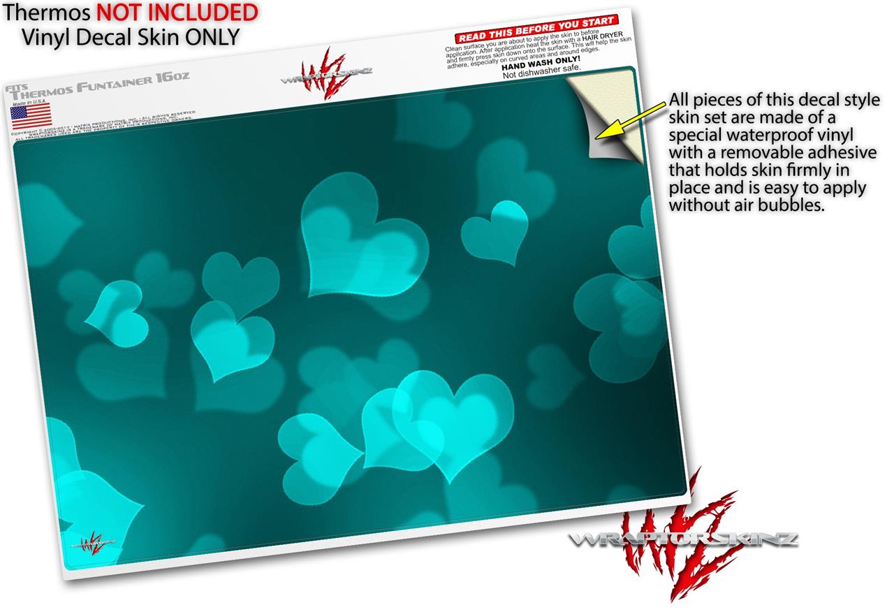 Skin Decal Wrap for Thermos Funtainer 16oz Bottle Bokeh Hearts Neon Teal (BOTTLE NOT INCLUDED) by WraptorSkinz
