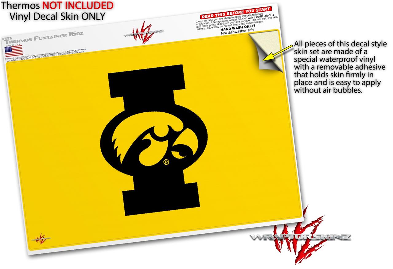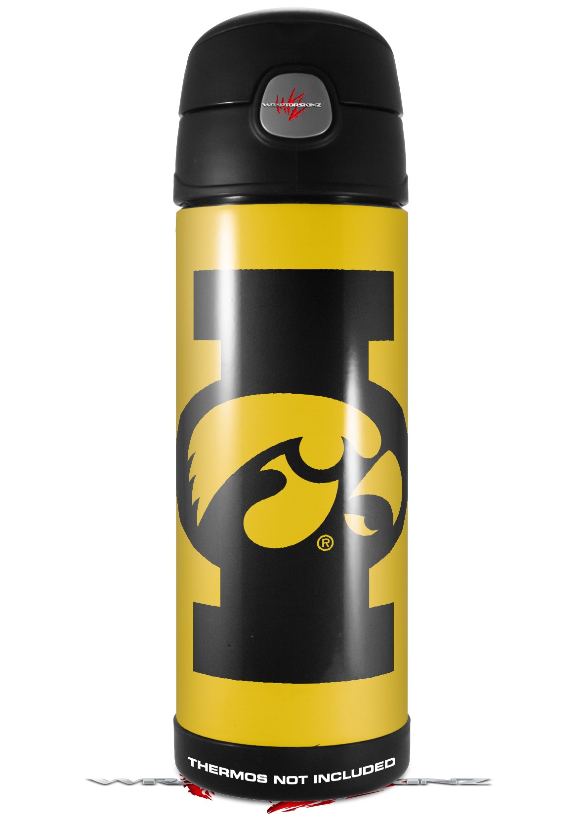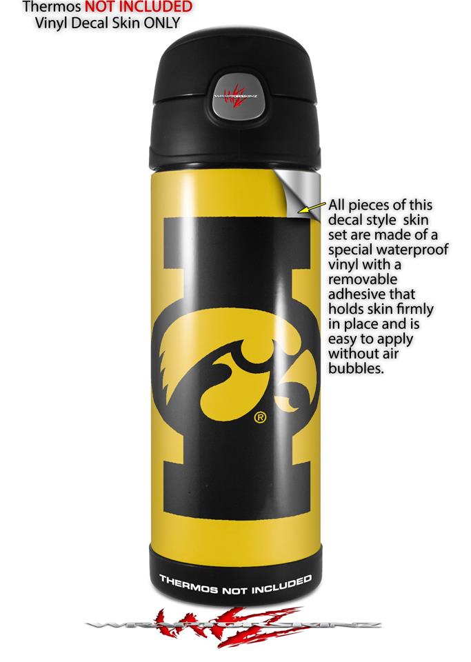 Skin Decal Wrap for Thermos Funtainer 16oz Bottle Iowa Hawkeyes Tigerhawk Oval 02 Black on Gold (BOTTLE NOT INCLUDED) by WraptorSkinz