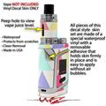 WraptorSkinz® skin wraps are printed using superb photo quality designs and vibrant colors printed with special fade resistant inks that last even in direct sun for years. WraptorSkinz are a composite of two layers of commercial grade materials. The bottom layer is a soft, flexible vinyl with a special removable adhesive that is easily positioned, applied without air bubbles. Next we print the bottom layer with UV protected, fade resistant inks that deliver superb photo quality designs in vibrant colors. Finally we bond a professional grade laminate over the entire skin adding a glossy protective finish. This product is not affiliated with or endorsed by the Smok brand.