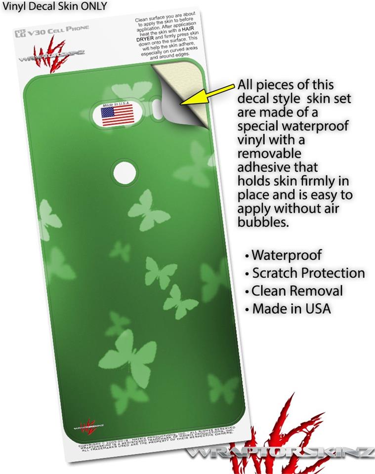 Skin Decal Wrap for LG V30 Bokeh Butterflies Green