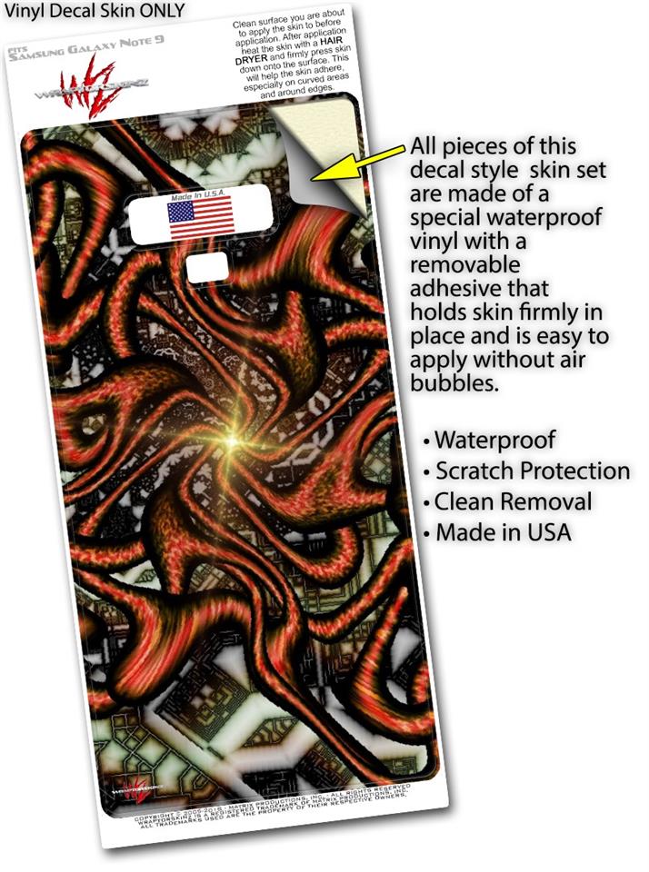 WraptorSkinz® skin wraps for the Samsung Galaxy Note 9 are printed using superb photo quality designs and vibrant colors printed with special fade resistant inks that last even in direct sun for years. WraptorSkinz are a composite of two layers of commercial grade materials. The bottom layer is a soft, flexible vinyl with a special removable adhesive that is easily positioned, applied without air bubbles. Next, we print the bottom layer with UV protected, fade resistant inks that deliver superb photo quality designs in vibrant colors. Finally, we bond a professional grade laminate over the entire Galaxy Note 9 skin adding a glossy protective finish. This product is not affiliated with or endorsed by Samsung.