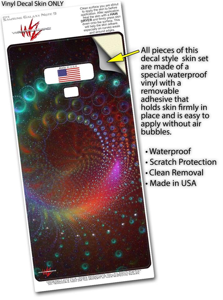 WraptorSkinz® skin wraps for the Samsung Galaxy Note 9 are printed using superb photo quality designs and vibrant colors printed with special fade resistant inks that last even in direct sun for years. WraptorSkinz are a composite of two layers of commercial grade materials. The bottom layer is a soft, flexible vinyl with a special removable adhesive that is easily positioned, applied without air bubbles. Next, we print the bottom layer with UV protected, fade resistant inks that deliver superb photo quality designs in vibrant colors. Finally, we bond a professional grade laminate over the entire Galaxy Note 9 skin adding a glossy protective finish. This product is not affiliated with or endorsed by Samsung.