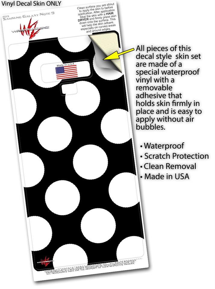 Decal style Skin Wrap compatible with Samsung Galaxy Note 9 Kearas Polka Dots White On Black
