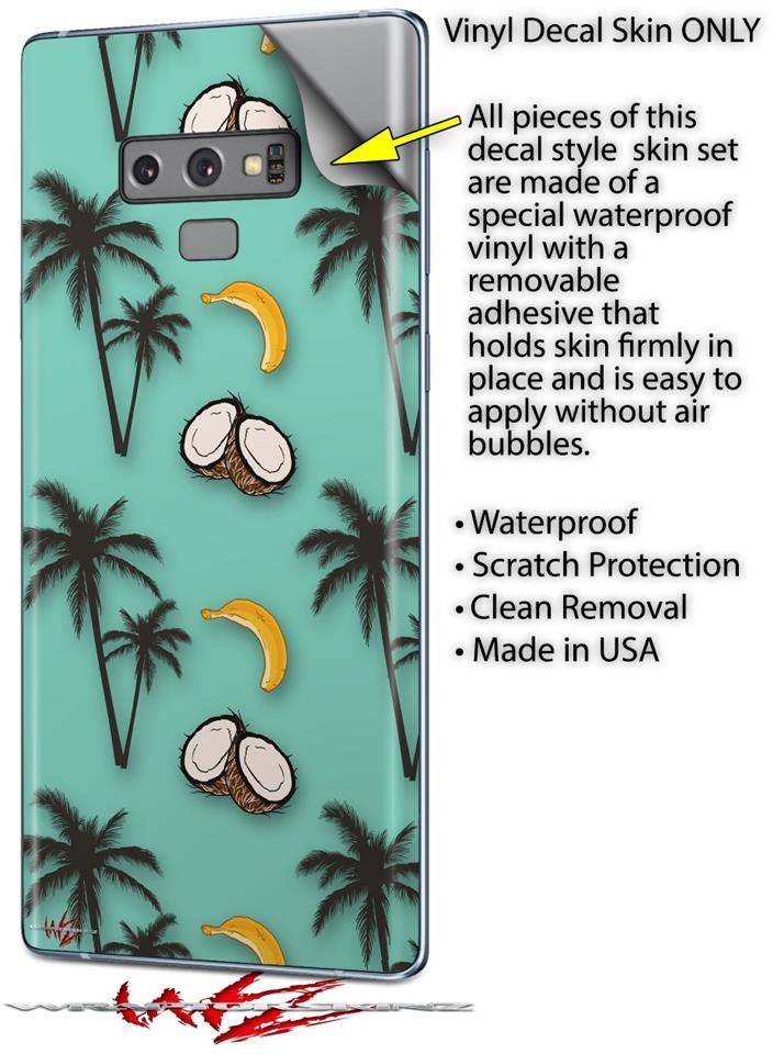 Decal style Skin Wrap compatible with Samsung Galaxy Note 9 Coconuts Palm Trees and Bananas Seafoam Green