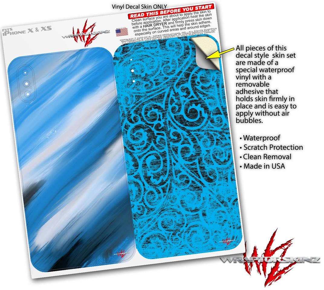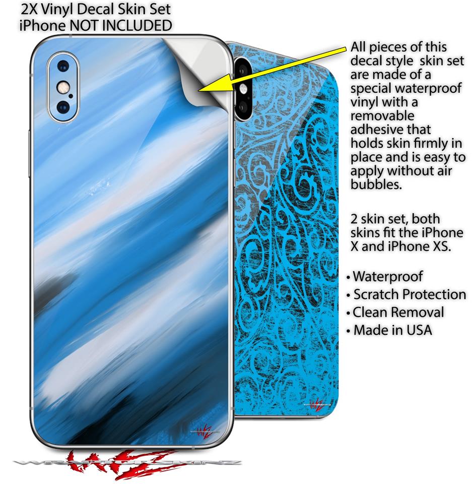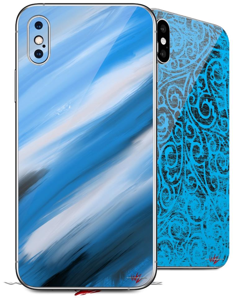 2 Decal style Skin Wraps set for Apple iPhone X and XS Paint Blend Blue
