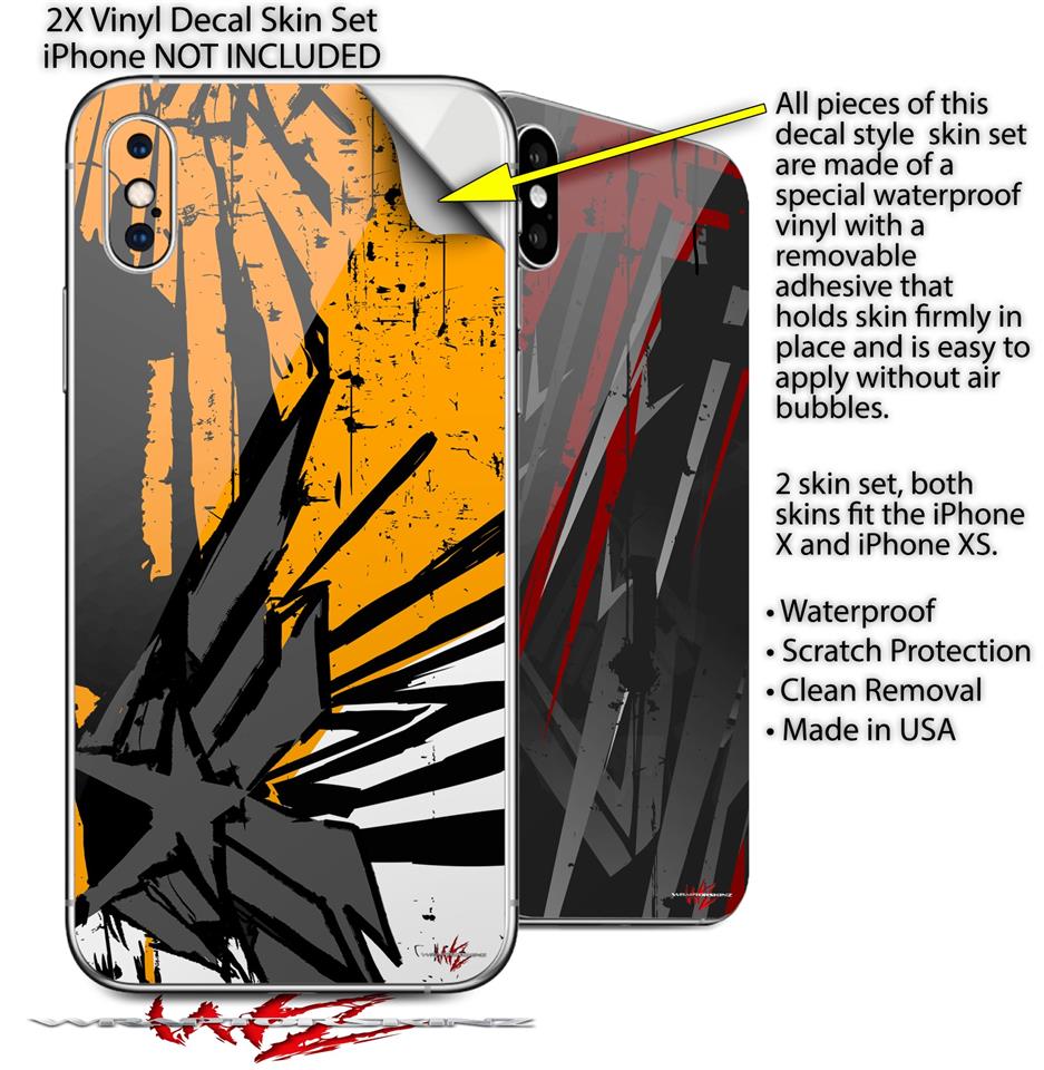 2 Decal style Skin Wraps set for Apple iPhone X and XS Baja 0040 Orange