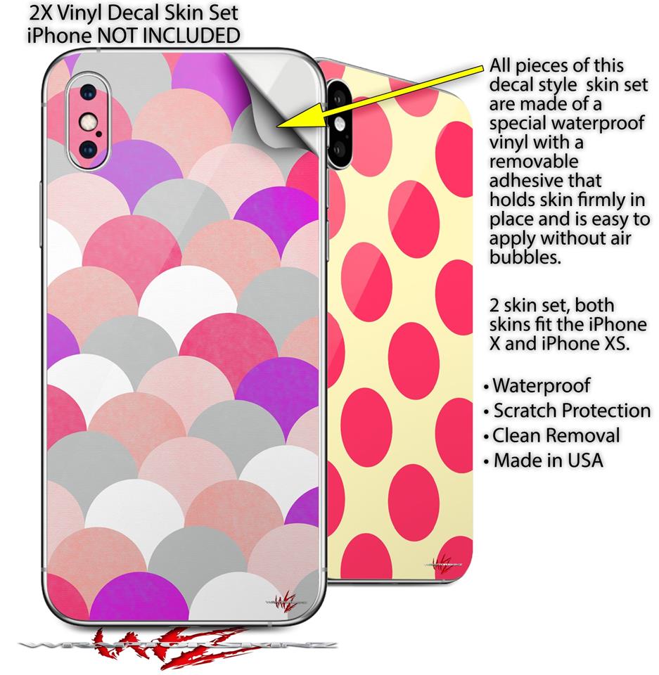 2 Decal style Skin Wraps set for Apple iPhone X and XS Brushed Circles Pink