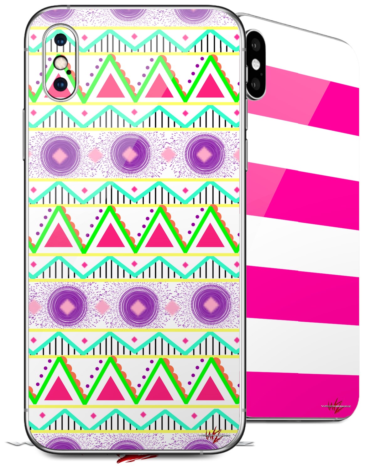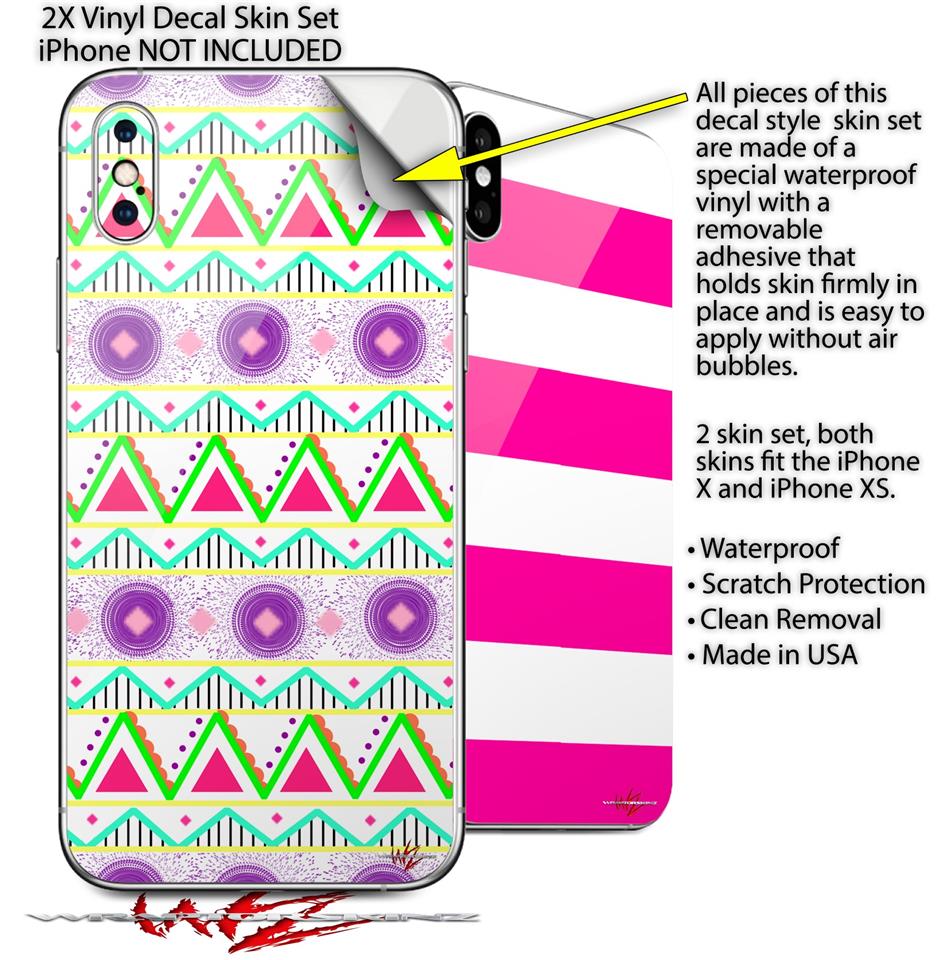2 Decal style Skin Wraps set for Apple iPhone X and XS Kearas Tribal 1