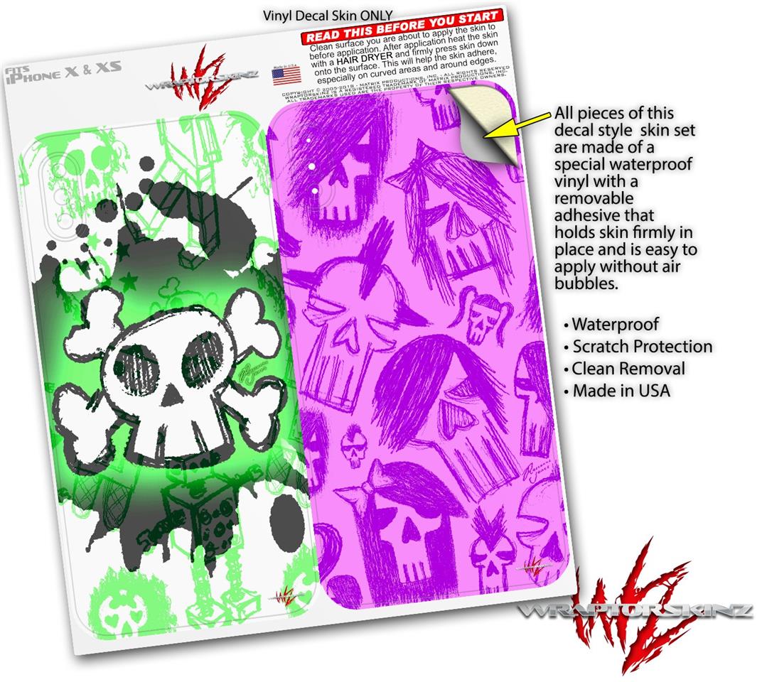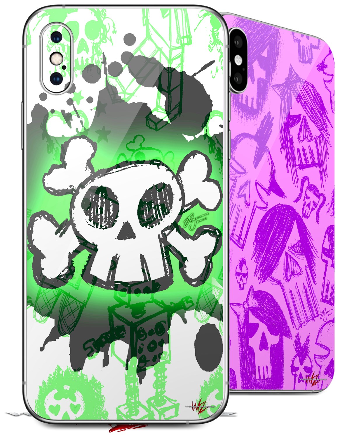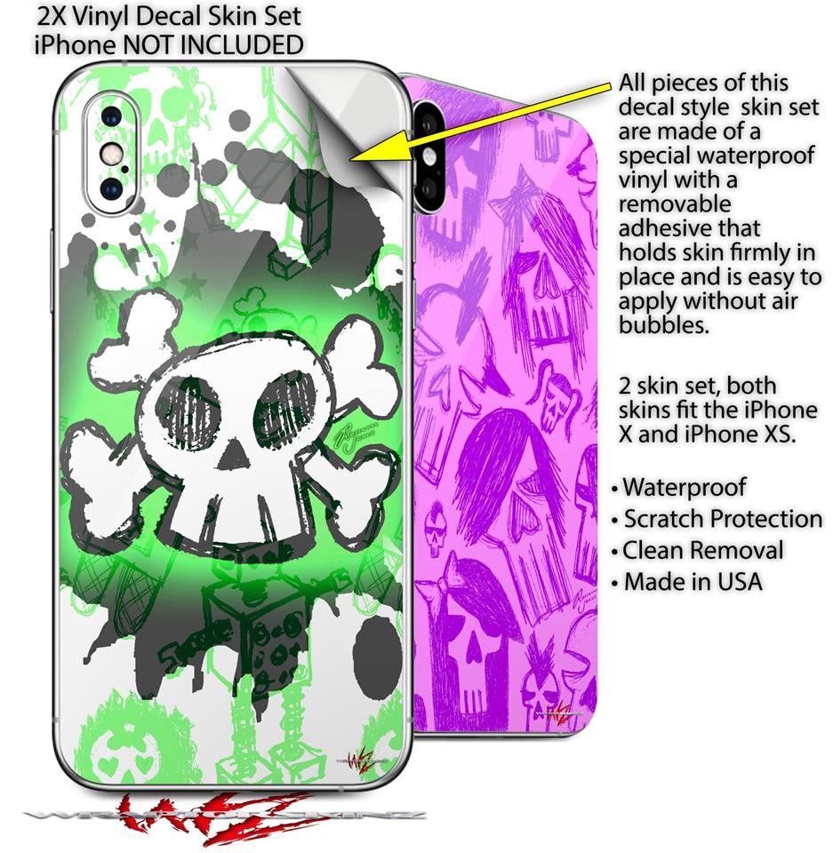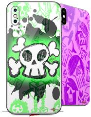 2 Decal style Skin Wraps set for Apple iPhone X and XS Cartoon Skull Green