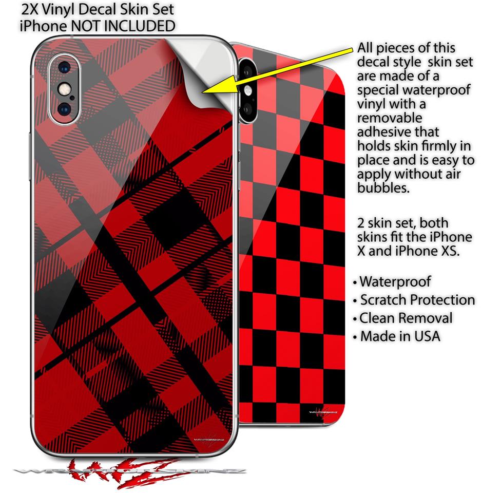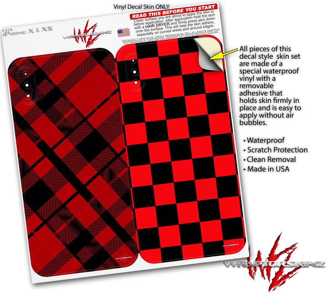 2 Decal style Skin Wraps set for Apple iPhone X and XS Red Plaid