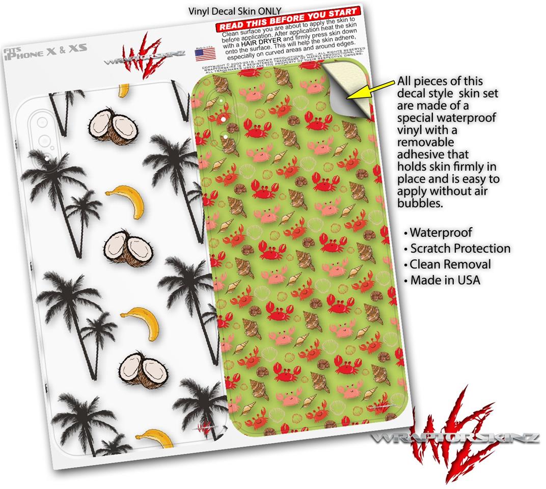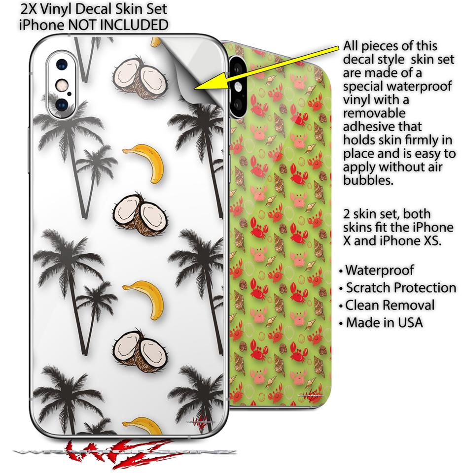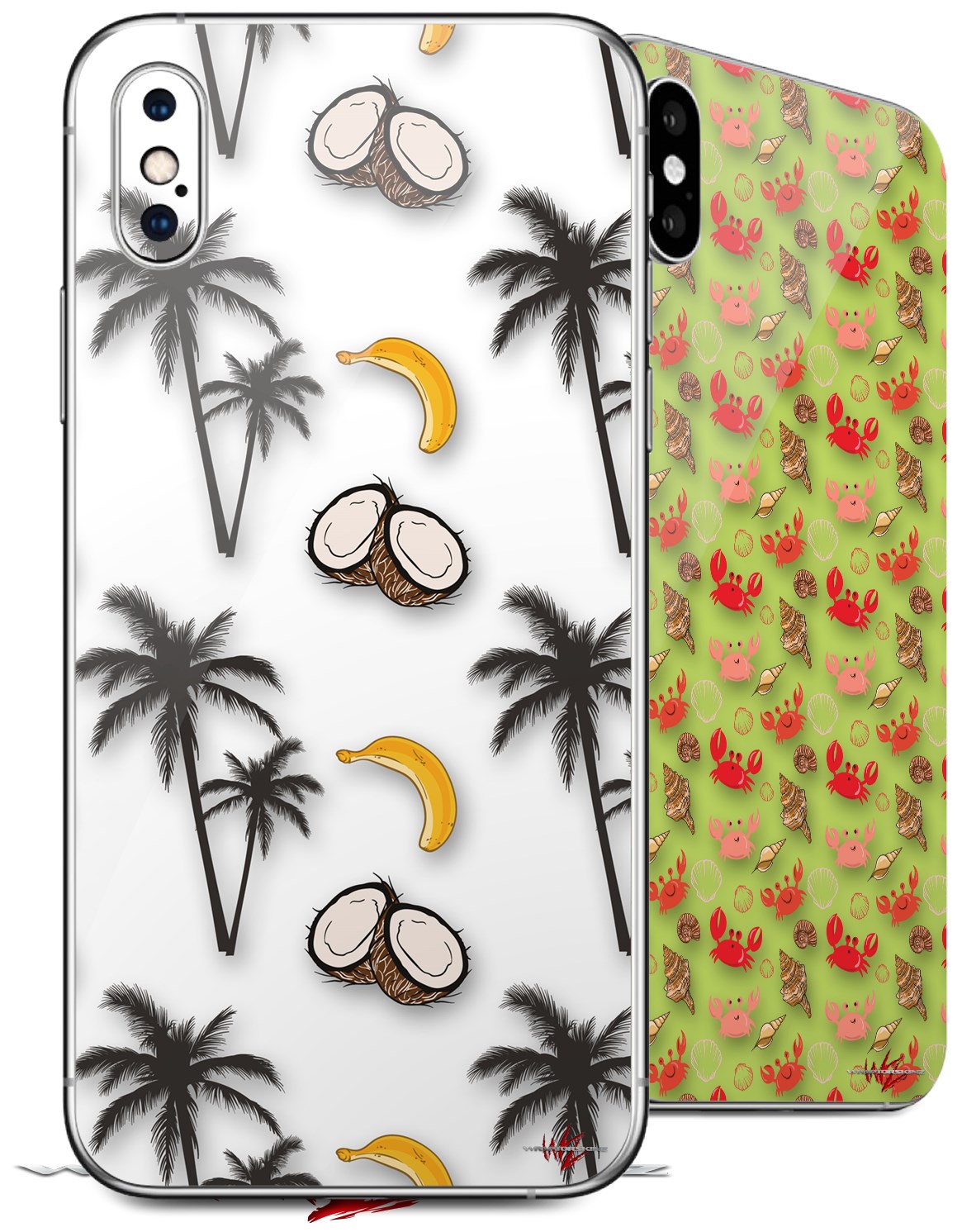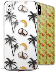 2 Decal style Skin Wraps set for Apple iPhone X and XS Coconuts Palm Trees and Bananas White