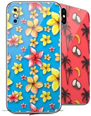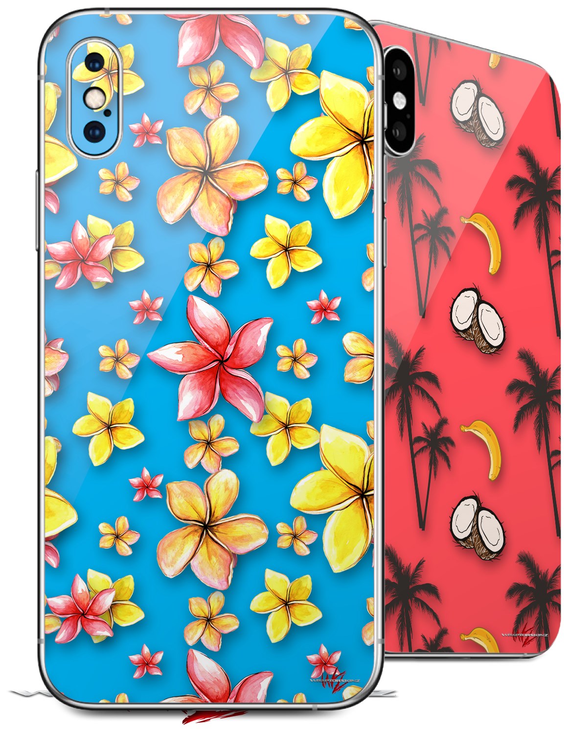 2 Decal style Skin Wraps set for Apple iPhone X and XS Beach Flowers Blue Medium