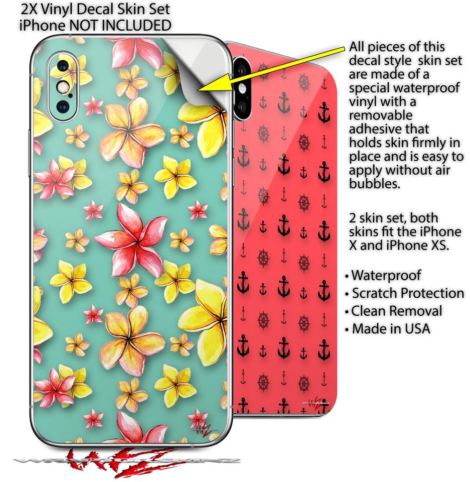 2 Decal style Skin Wraps set for Apple iPhone X and XS Beach Flowers Seafoam Green