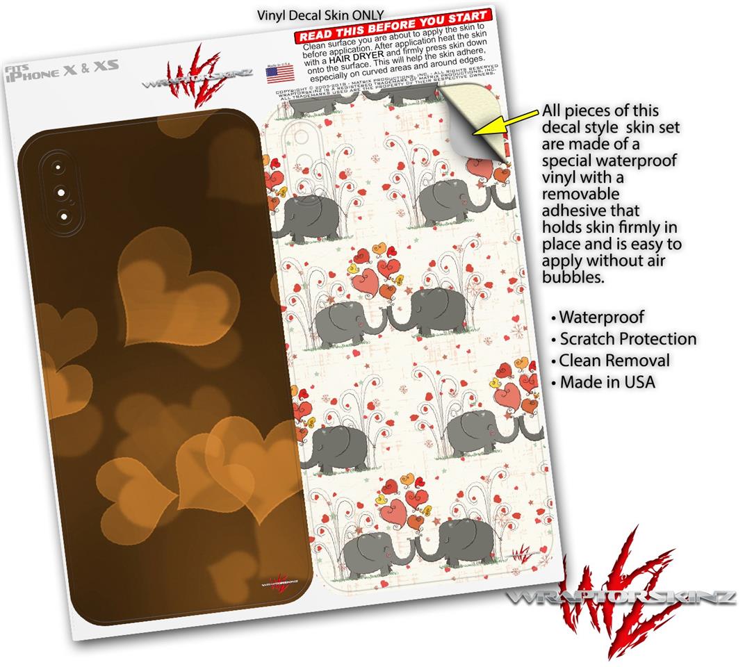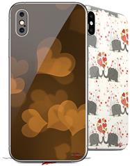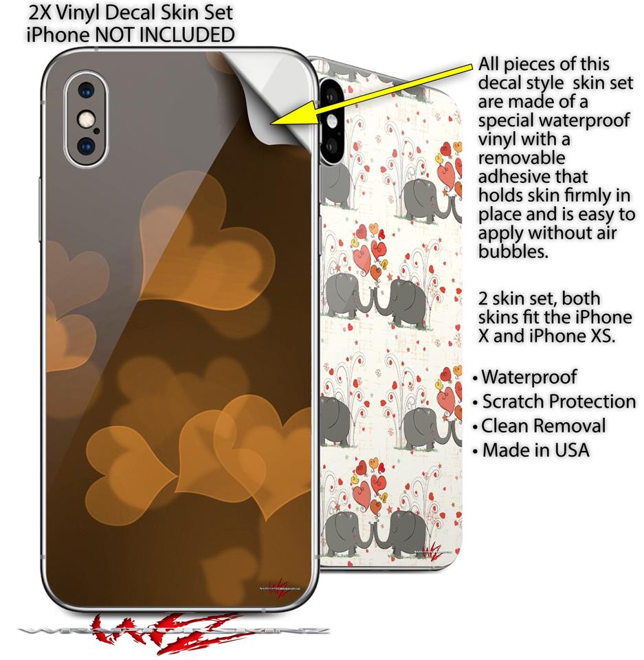 2 Decal style Skin Wraps set for Apple iPhone X and XS Bokeh Hearts Orange