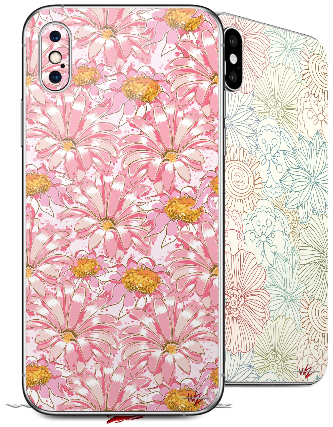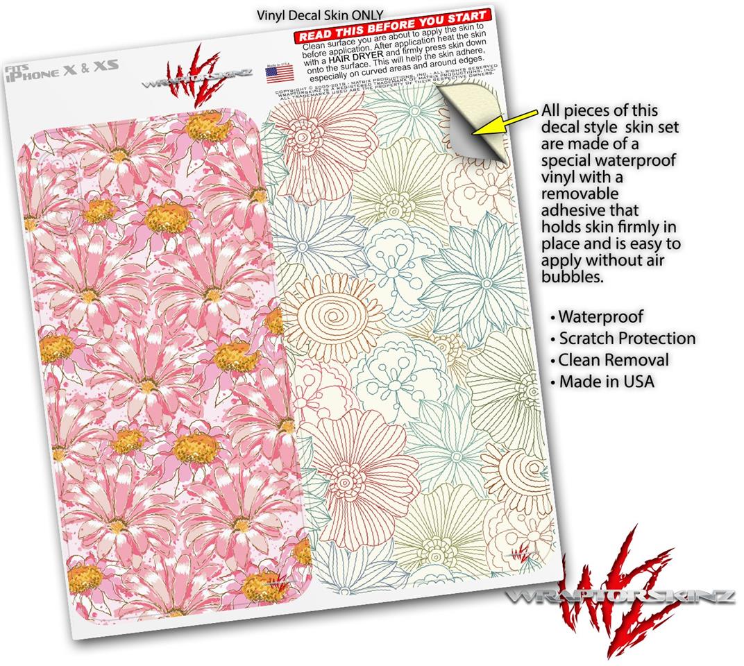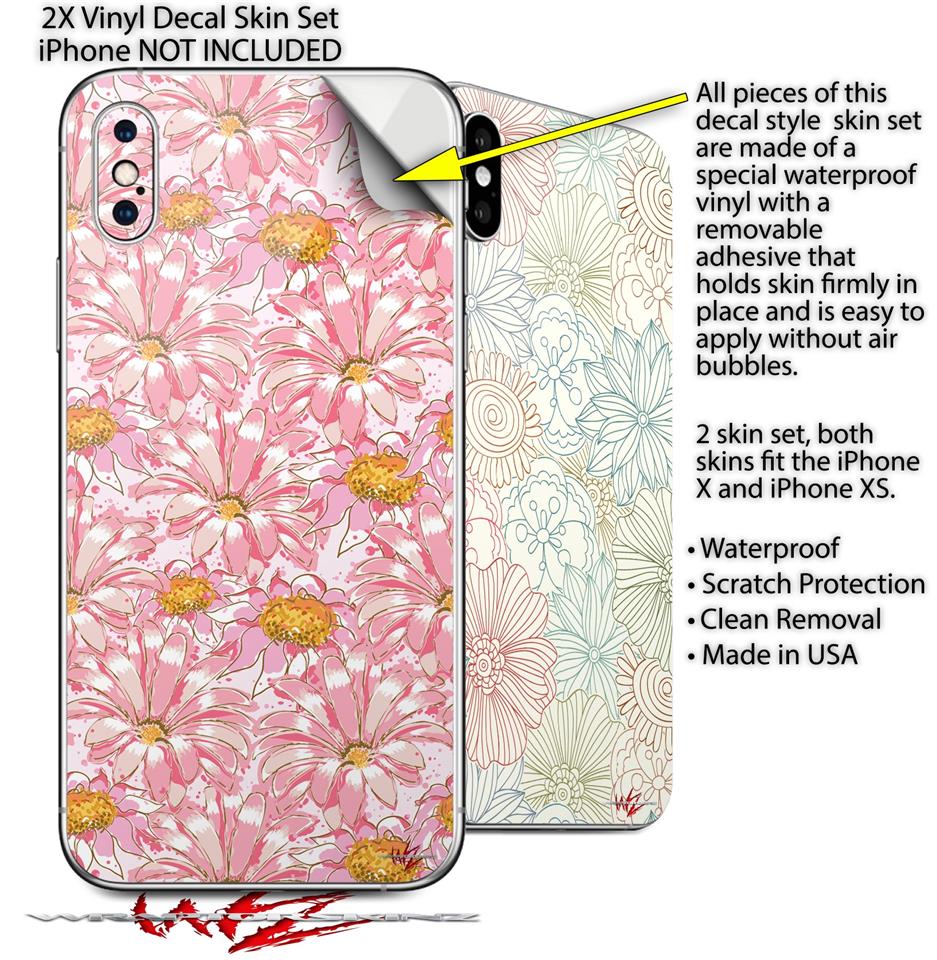 2 Decal style Skin Wraps set for Apple iPhone X and XS Flowers Pattern 12