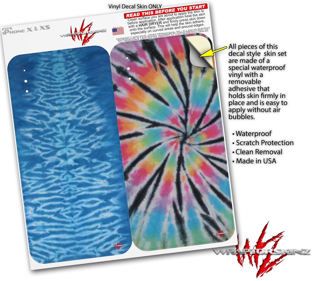2 Decal style Skin Wraps set for Apple iPhone X and XS Tie Dye Spine 103