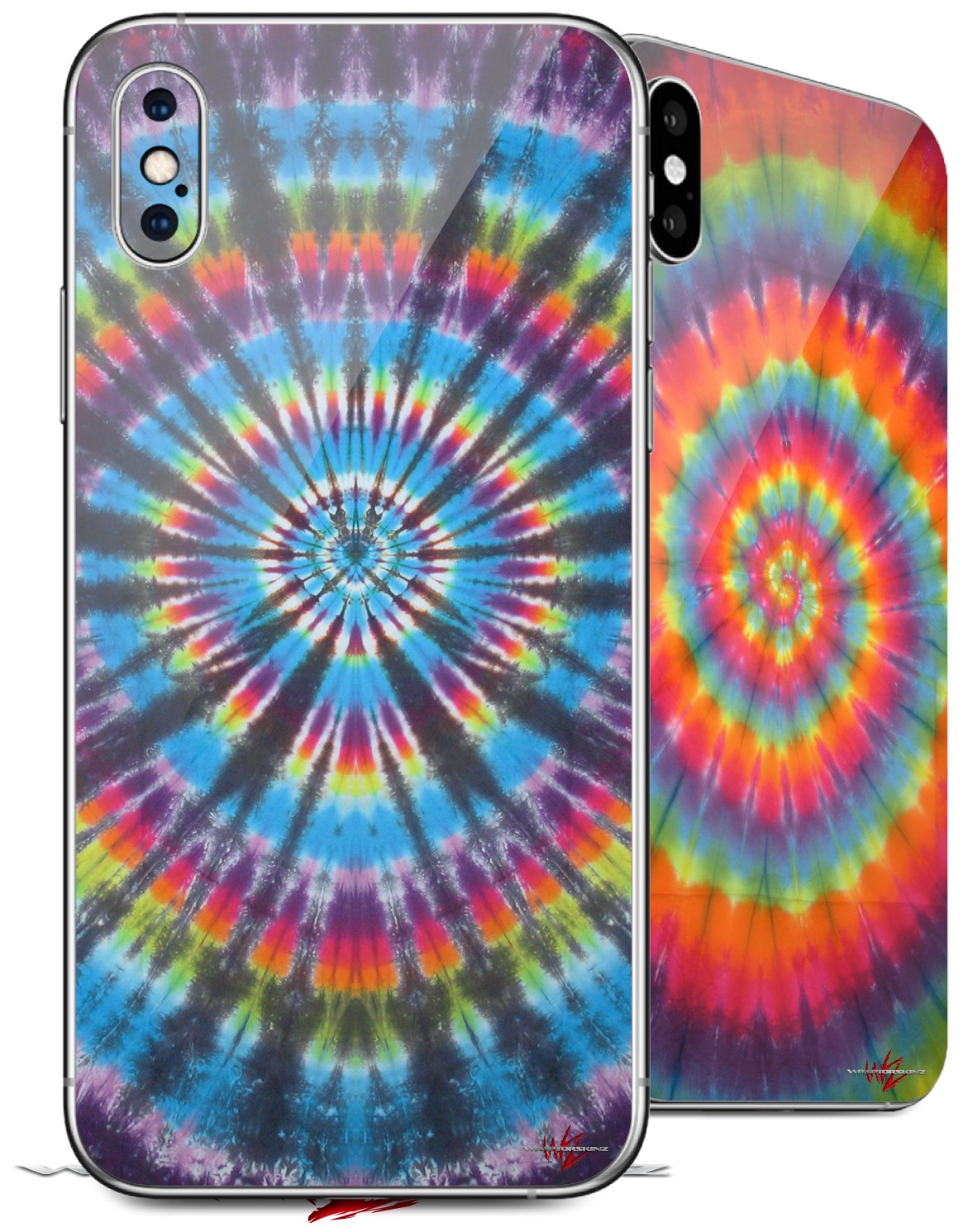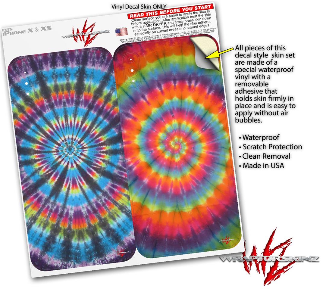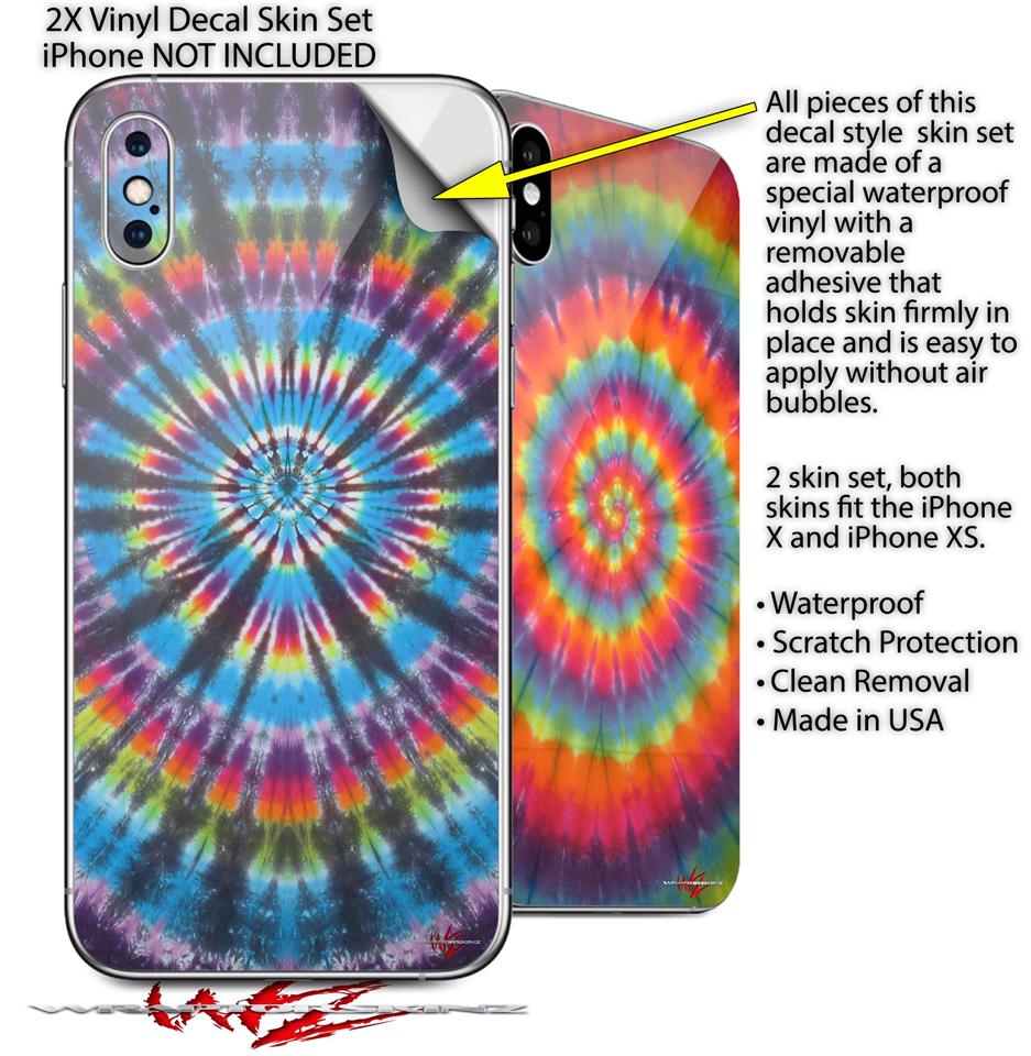 2 Decal style Skin Wraps set for Apple iPhone X and XS Tie Dye Swirl 101